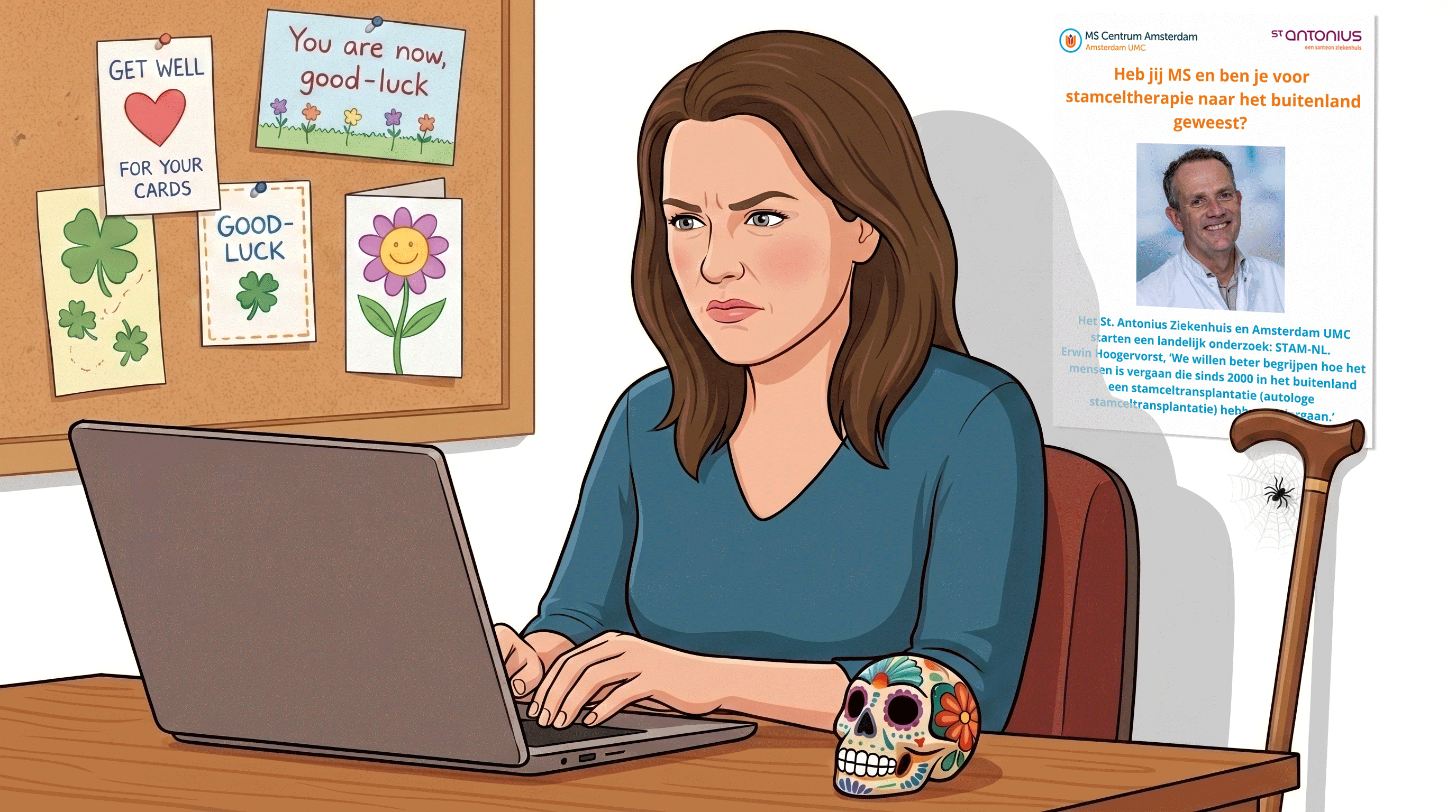 Neurologen die de afgelopen jaren werden uitgenodigd voor gesprekken over de knelpunten — door de Projectgroep aHSCT van de MS Vereniging — weigerden bijna allemaal. De patiëntenorganisaties die al jaren het aanspreekpunt zijn voor mensen die naar het buitenland gaan, zijn niet betrokken bij STAM-NL. Dat zijn keuzes. Geen kwade wil — maar keuzes die het systeem in stand houden en daarmee bepalen wie er wel en niet toegang krijgt.